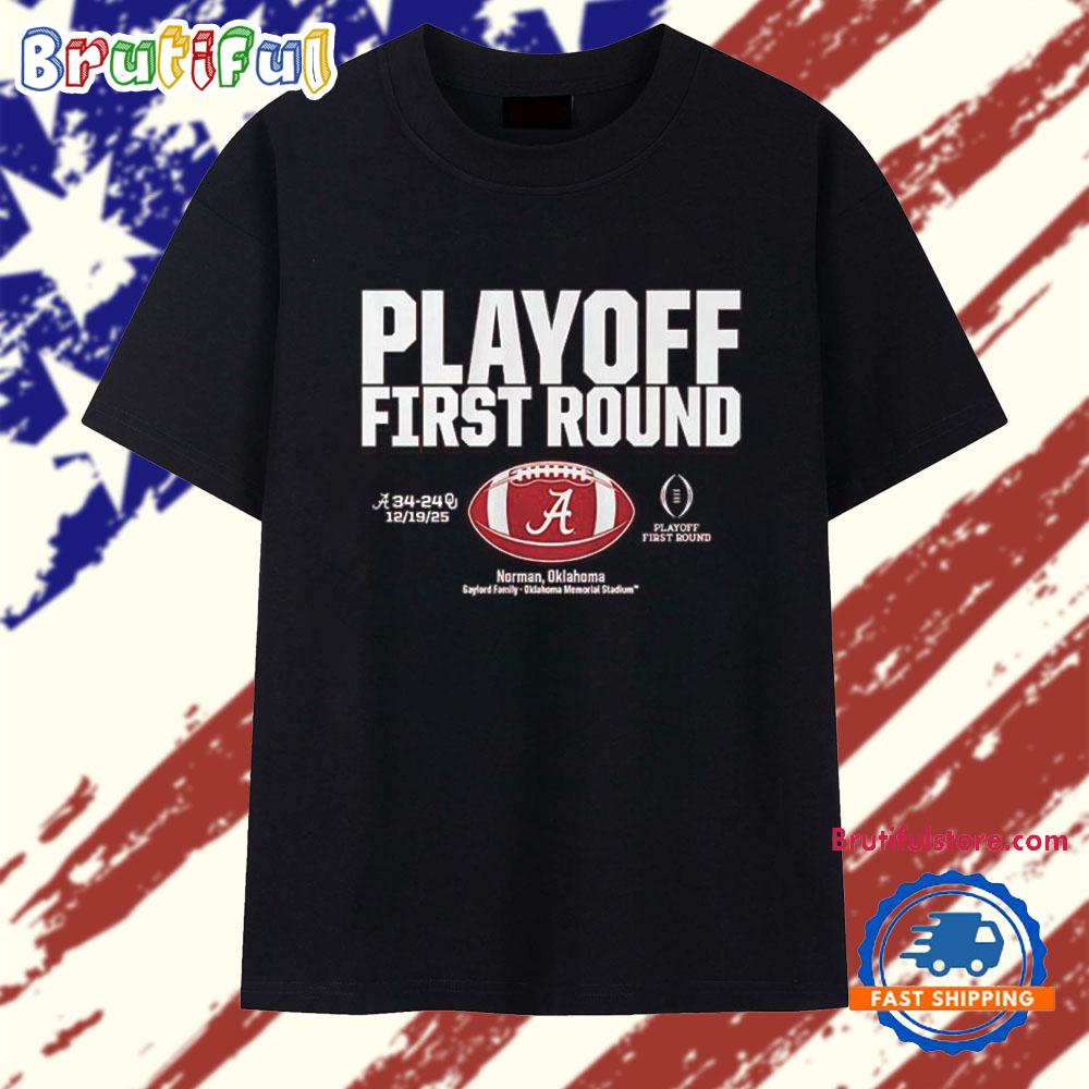 Product details: Alabama Crimson Tide 2025 CFP First Round Winner 34-25 score T Shirt