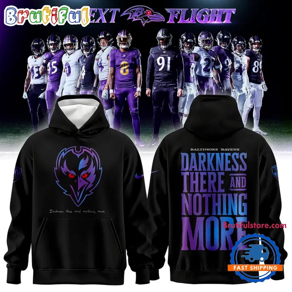 Product details: Baltimore Ravens 2026 Darkness There And Nothing More Black Hoodie Shirt