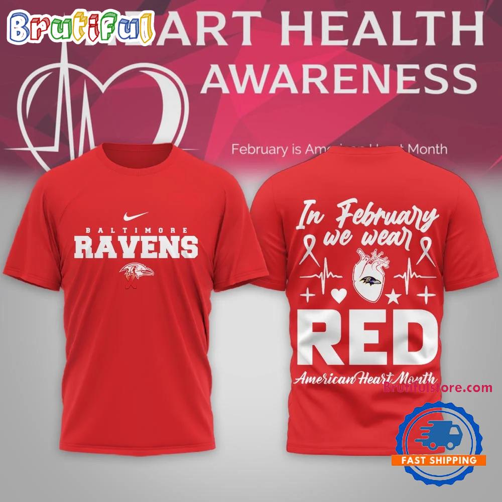Product details: Baltimore Ravens 2026 NFL February is American Heart Month Limited Edition 3D Shirt