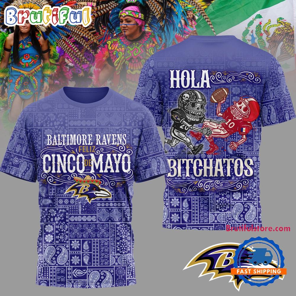 Product details: Baltimore Ravens 2026 NFL Hola Bitchatos Cinco De Mayo Limited Edition 3D T Shirt