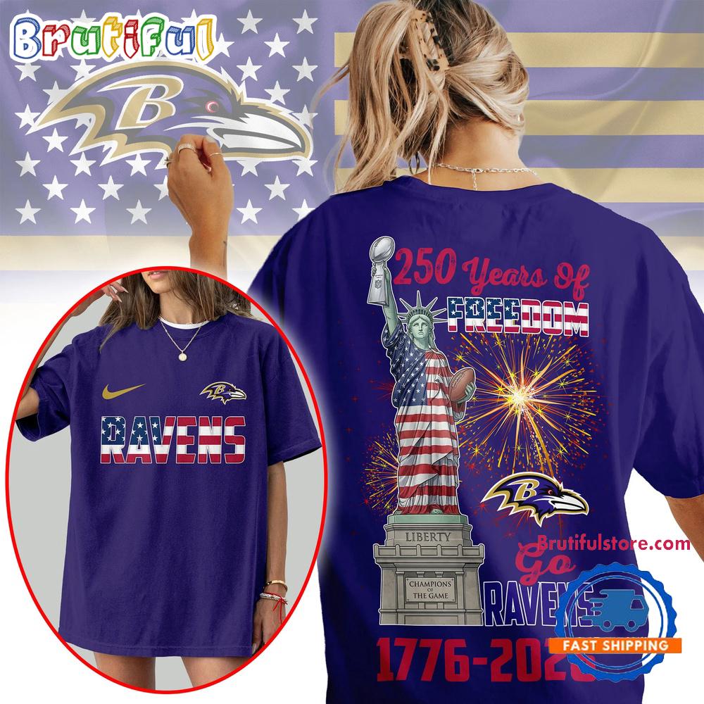Product details: Baltimore Ravens 2026 NFL Statue Of Liberty 250th Anniversary Unisex 3D Shirt