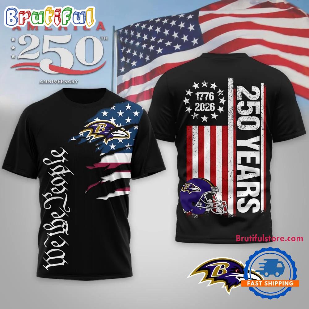 Baltimore Ravens NFL We The People USA 250th Anniversary Black T Shirt The 3D Hoodie is a fashion statement that goes beyond the ordinary. Using advanced printing technology, it brings designs to life with depth and vividness. Crafted from high-quality materials, it offers comfort and durability. The three-dimensional graphics create a captivating effect that’s perfect for casual wear or making a bold statement. Whether you’re expressing your fandom or showcasing your unique taste, the 3D Hoodie is a wearable work of art that sets you apart from the crowd. Embrace both style and individuality with this distinctive fashion piece.