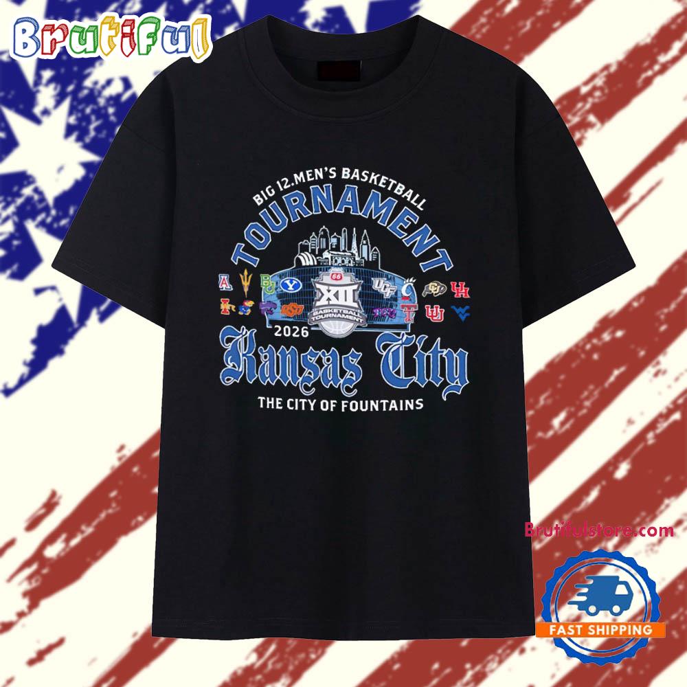 Product details: Big 12 Men’s Basketball 2026 Big 12 Kansas City the Tournament City of Fountains T Shirt
