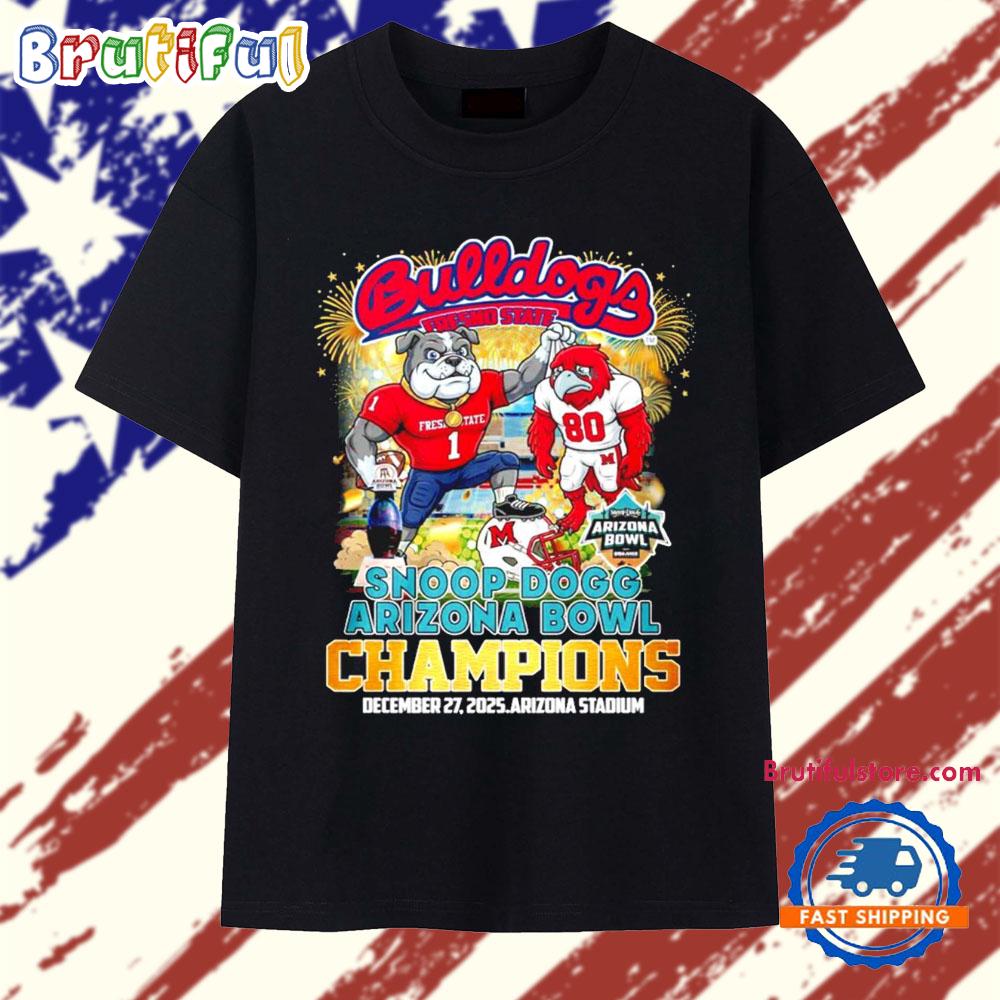 Product details: Bulldogs Fresno State 2025 Snoop Dogg Arizona Bowl Champions mascot T Shirt