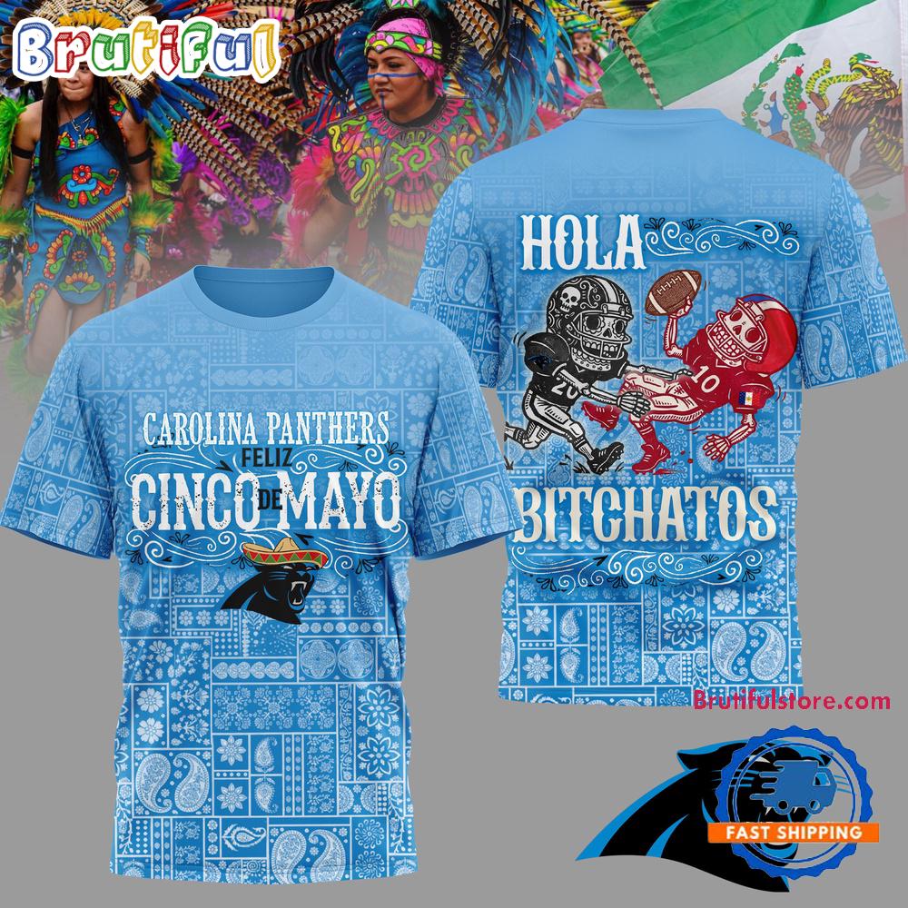 Product details: Carolina Panthers 2026 NFL Hola Bitchatos Cinco De Mayo Limited Edition 3D T Shirt