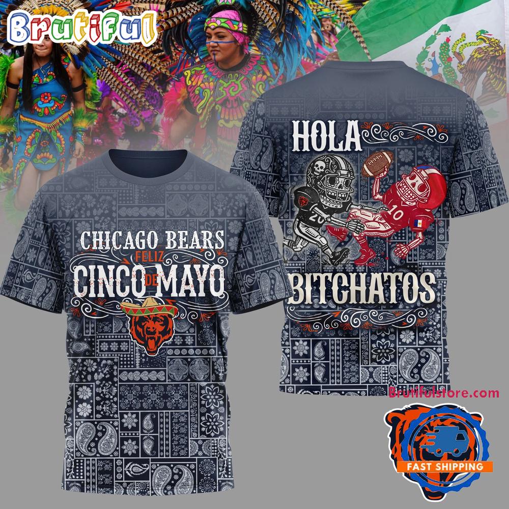 Product details: Chicago Bears 2026 NFL Hola Bitchatos Cinco De Mayo Limited Edition 3D T Shirt