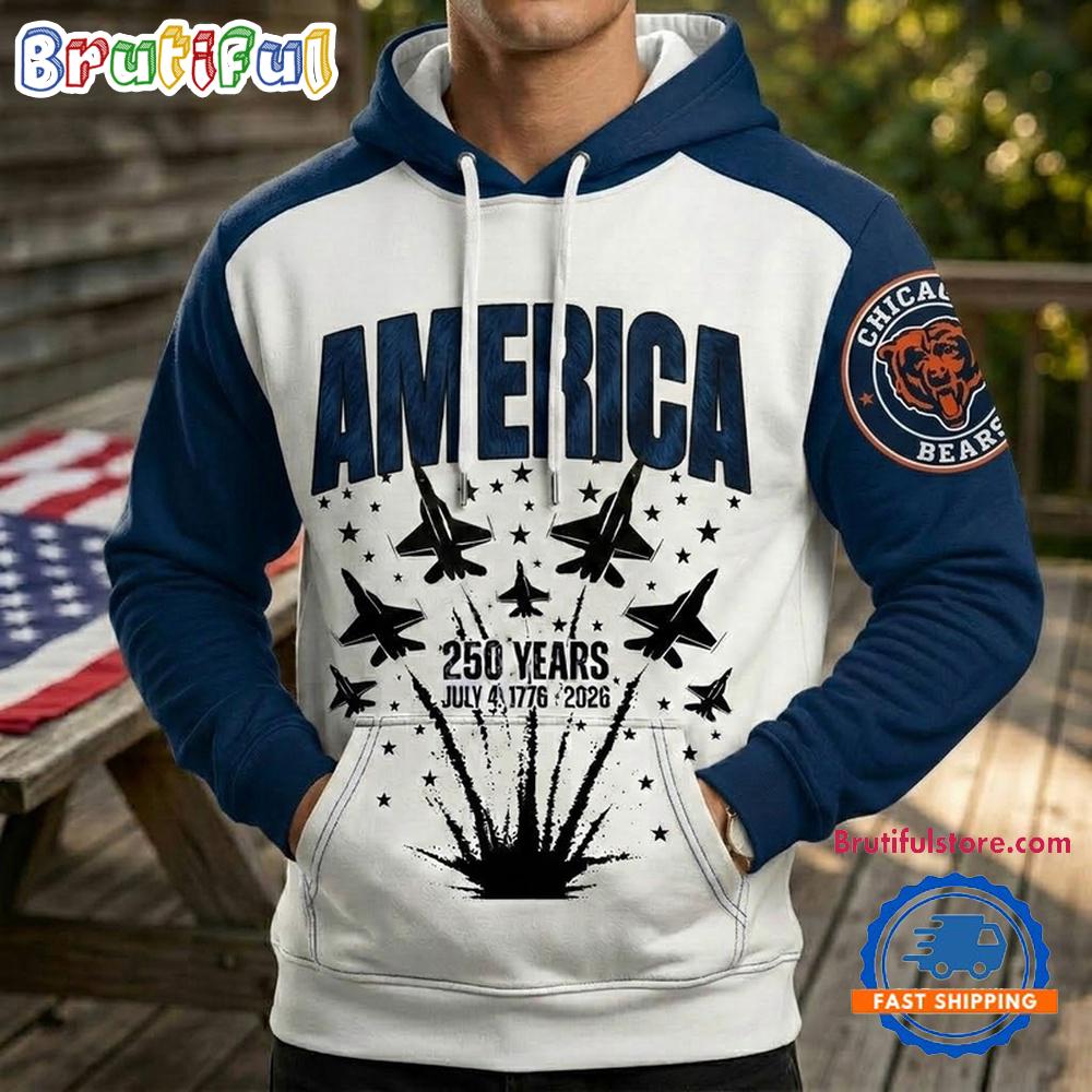 Chicago Bears 250th Anniversary of US All Over Printed Hoodie Shirt The 3D Hoodie is a fashion statement that goes beyond the ordinary. Using advanced printing technology, it brings designs to life with depth and vividness. Crafted from high-quality materials, it offers comfort and durability. The three-dimensional graphics create a captivating effect that’s perfect for casual wear or making a bold statement. Whether you’re expressing your fandom or showcasing your unique taste, the 3D Hoodie is a wearable work of art that sets you apart from the crowd. Embrace both style and individuality with this distinctive fashion piece.