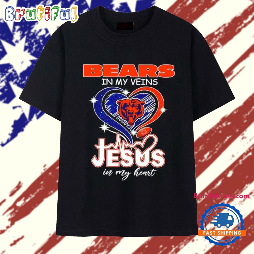 Product details: Chicago Bears in my veins Jesus in my heart 2026 T Shirt