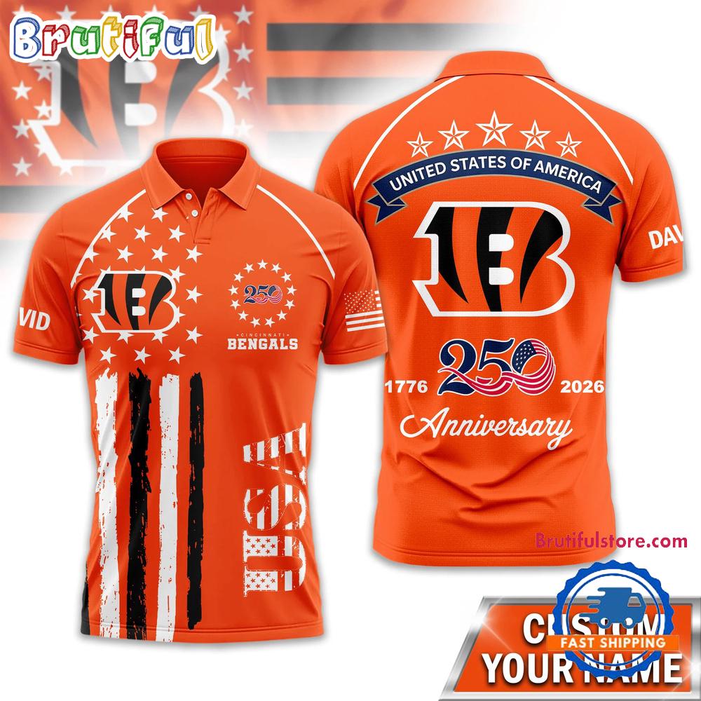 Cincinnati Bengals 2026 NFL American Semiquincentennial 250th Anniversary Polo Shirt The Polo Shirt is the epitome of casual sophistication. Crafted with a blend of comfort and style, it offers a versatile wardrobe essential. The classic collar and button-up design effortlessly bridge the gap between relaxed and polished. Made from premium fabrics, they provide a comfortable fit while maintaining a refined look. Whether for a smart-casual office day or a weekend outing, Polo Shirts deliver an effortless ensemble that exudes confidence and timeless charm, making them a must-have for any fashion-forward individual.
