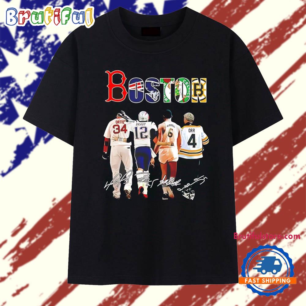 Product details: David Ortiz Tom Brady Bill Russell Bobby Orr BOSTON sports team logo T Shirt