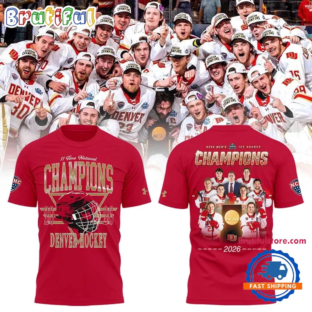 - Denver Pioneers 11-Time NCAA Frozen Four Men’s Ice Hockey National Champions T Shirt