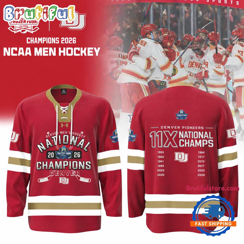 Denver Pioneers Men’s Hockey 2026 National Champions Limited Edition Red Jersey Shirt Introducing our Hockey Jersey, the perfect blend of durability and style. Made from high-quality, breathable fabric, it ensures maximum comfort and performance on the field. The bold colors and detailed design capture the essence of your team spirit. Whether you’re playing or cheering from the stands, our Hockey Jersey lets you show your passion with pride.