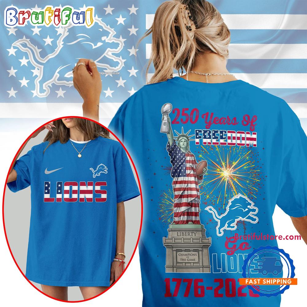 Product details: Detroit Lions 2026 NFL Statue Of Liberty 250th Anniversary Unisex 3D Shirt