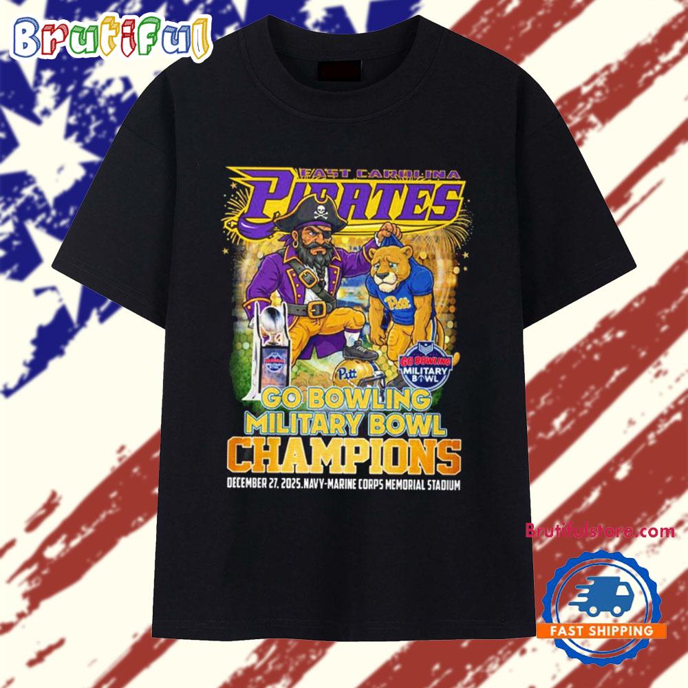 Product details: East Carolina Pirates 2025 Go Bowling Military Bowl Champions T Shirt