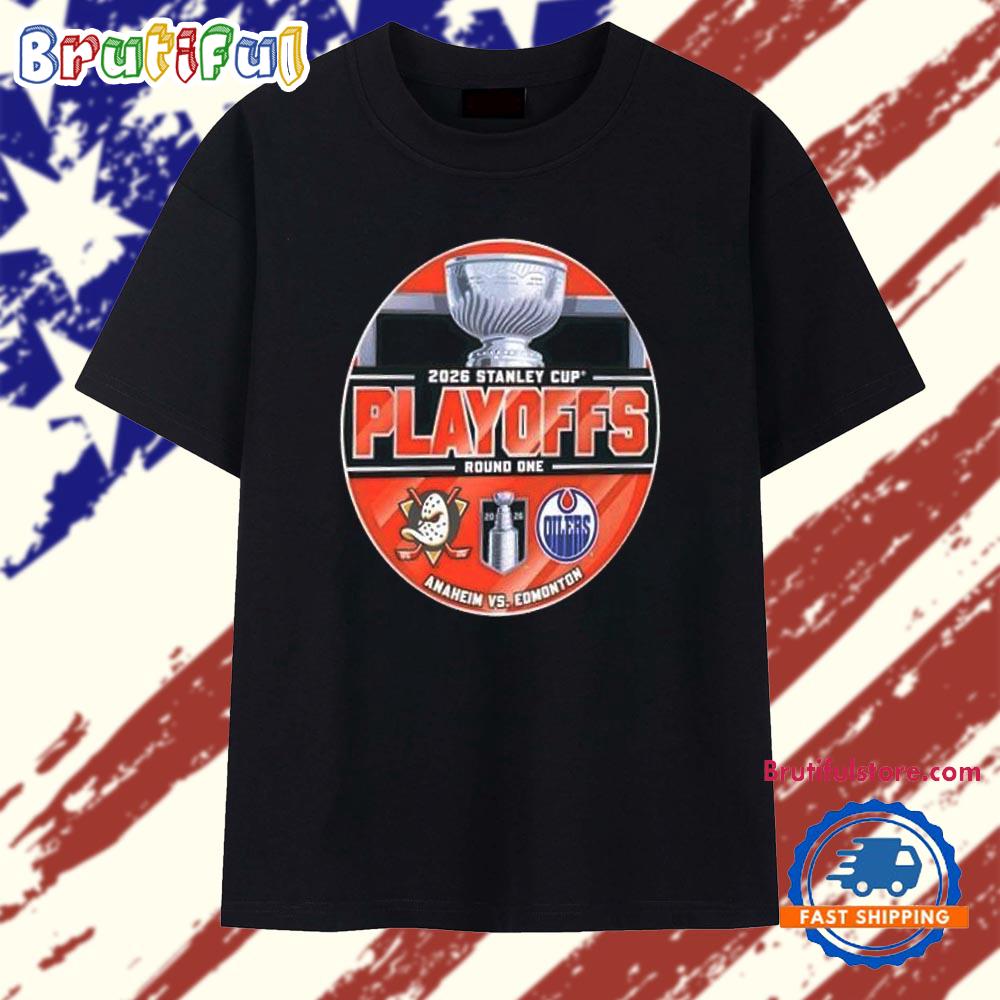 Product details: Edmonton Oilers vs. Anaheim Ducks 2026 Stanley Cup playoffs round 1 matchup T Shirt