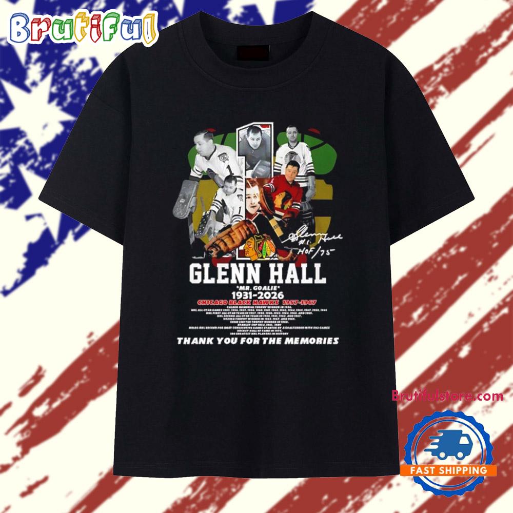 Product details: Glenn Hall Mr Goalie 1931 2026 Chicago Black Hawks thank you T Shirt
