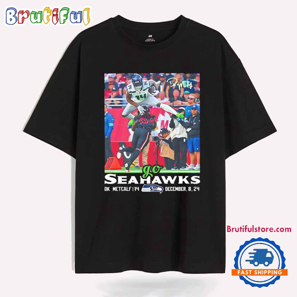 Introducing the Go Seahawks DK Metcalf Fly Hurdle December 8 2024 Signature T-Shirt – a unique blend of style, passion, and fan dedication. This exclusive DK Metcalf T-Shirt celebrates the remarkable moment when DK Metcalf showcased his legendary agility and prowess during the December 8, 2024, game. As you embrace the season spirit, this tee becomes a perfect wardrobe addition for true Seattle Seahawks fans who relish iconic sportsmanship and stylish apparel.