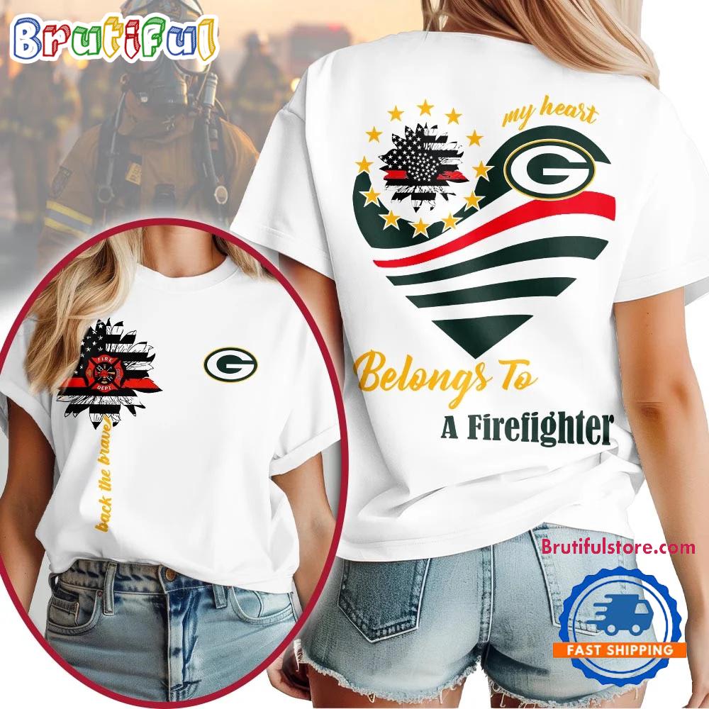 Product details: Green Bay Packers 2026 NFL My Heart Belongs To A Firefighter Unisex T Shirt