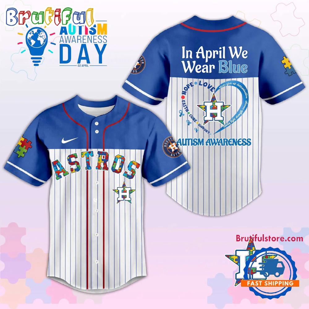 Product details: Houston Astros In April We Wear Blue Autism Baseball Jersey