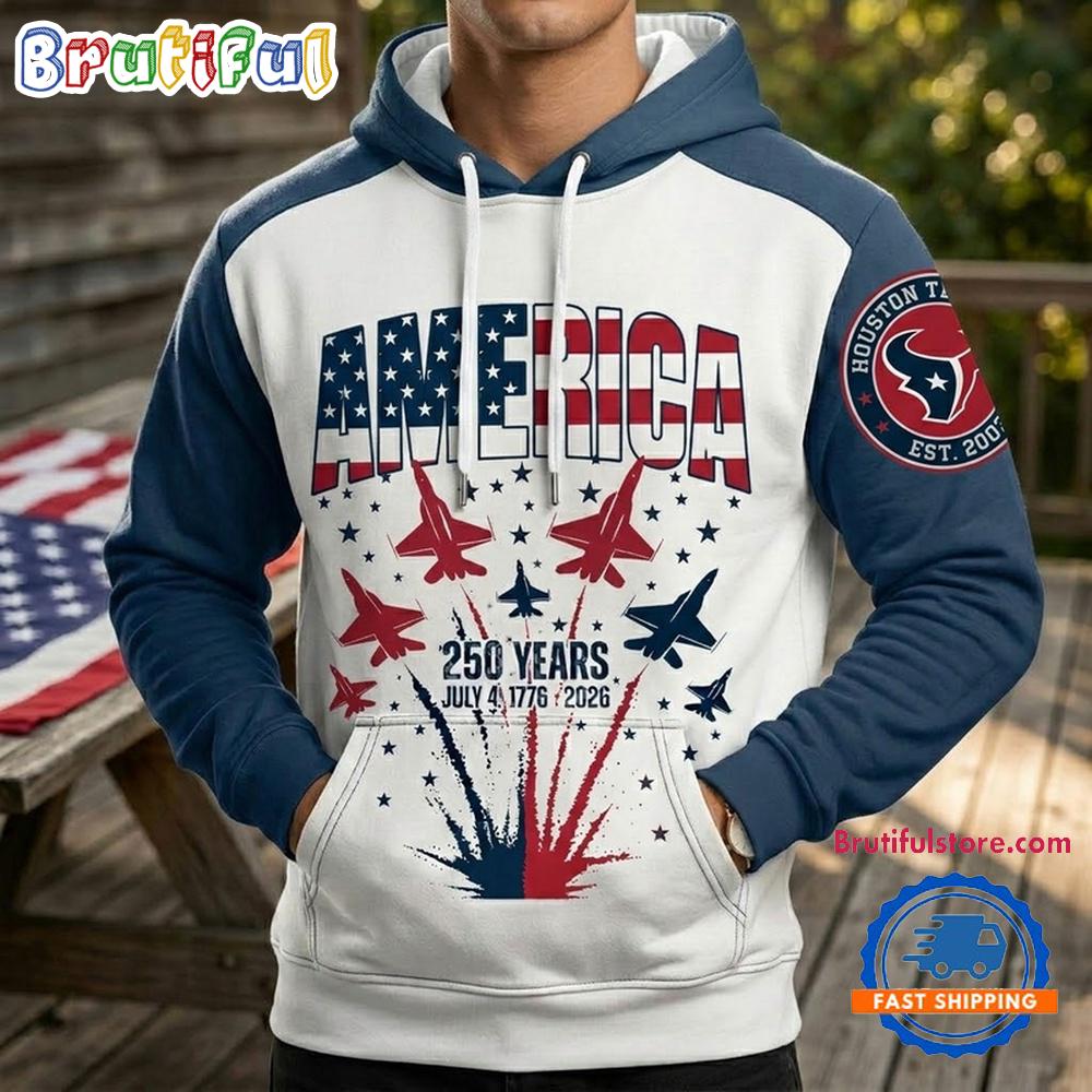 Houston Texans 250th Anniversary of US All Over Printed Hoodie Shirt The 3D Hoodie is a fashion statement that goes beyond the ordinary. Using advanced printing technology, it brings designs to life with depth and vividness. Crafted from high-quality materials, it offers comfort and durability. The three-dimensional graphics create a captivating effect that’s perfect for casual wear or making a bold statement. Whether you’re expressing your fandom or showcasing your unique taste, the 3D Hoodie is a wearable work of art that sets you apart from the crowd. Embrace both style and individuality with this distinctive fashion piece.