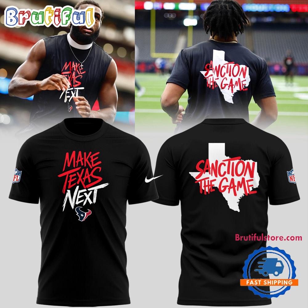 Houston Texans Make Texas Next Sanction the Game 2026 T Shirt The 3D Hoodie is a fashion statement that goes beyond the ordinary. Using advanced printing technology, it brings designs to life with depth and vividness. Crafted from high-quality materials, it offers comfort and durability. The three-dimensional graphics create a captivating effect that’s perfect for casual wear or making a bold statement. Whether you’re expressing your fandom or showcasing your unique taste, the 3D Hoodie is a wearable work of art that sets you apart from the crowd. Embrace both style and individuality with this distinctive fashion piece.