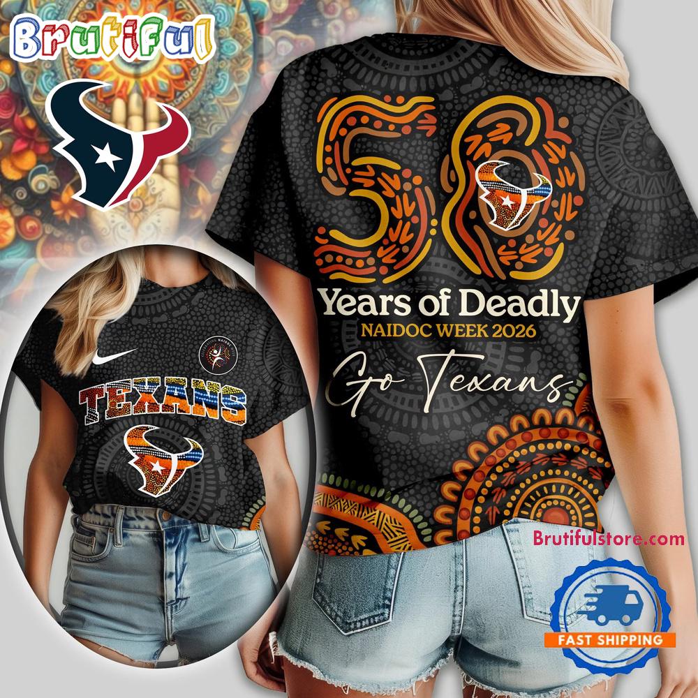 Houston Texans NFL Naidoc Week 2026 Unisex T Shirt The 3D Hoodie is a fashion statement that goes beyond the ordinary. Using advanced printing technology, it brings designs to life with depth and vividness. Crafted from high-quality materials, it offers comfort and durability. The three-dimensional graphics create a captivating effect that’s perfect for casual wear or making a bold statement. Whether you’re expressing your fandom or showcasing your unique taste, the 3D Hoodie is a wearable work of art that sets you apart from the crowd. Embrace both style and individuality with this distinctive fashion piece.