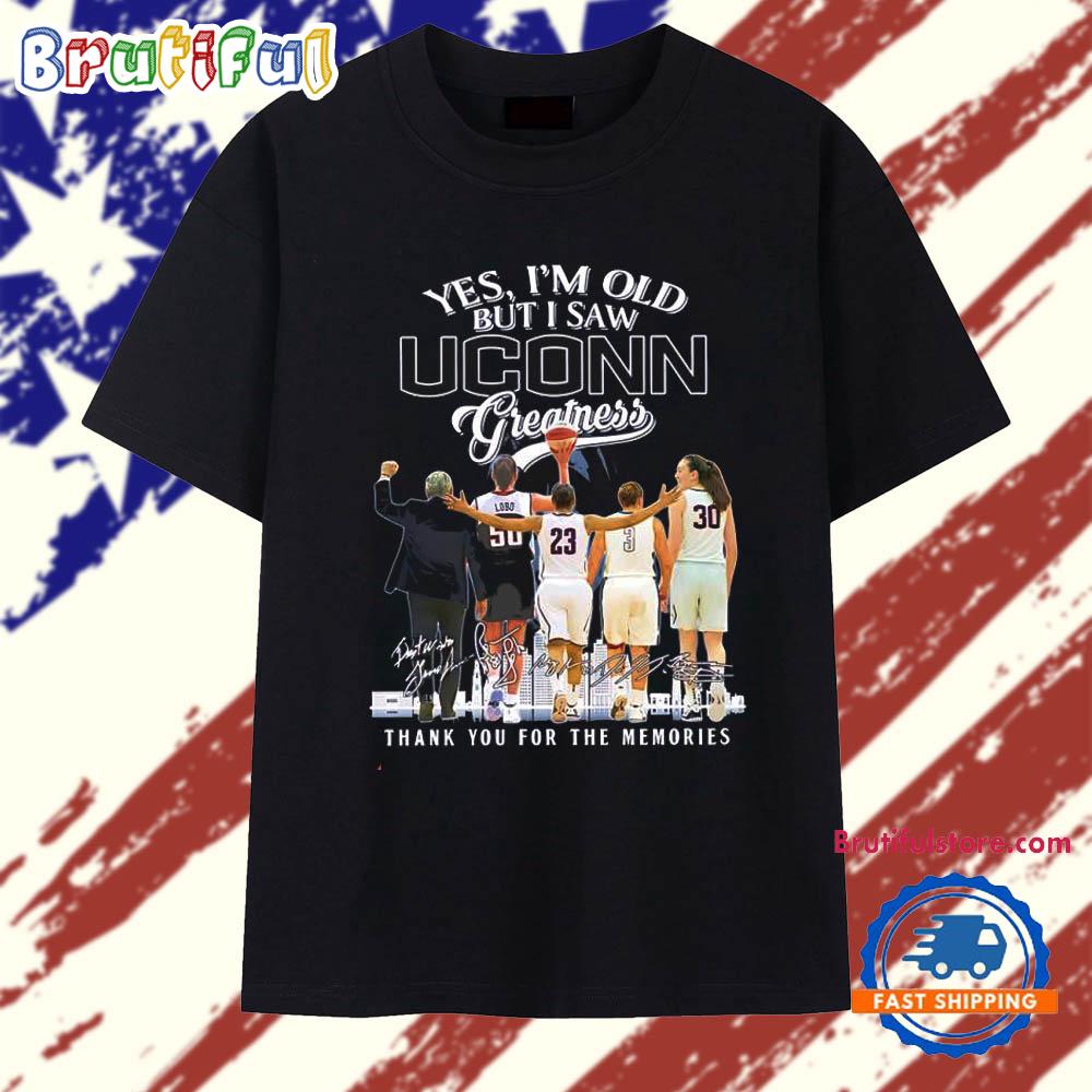 Photos Of I’m Old But I Saw Uconn Greatness play and coach signatures skyline T Shirt