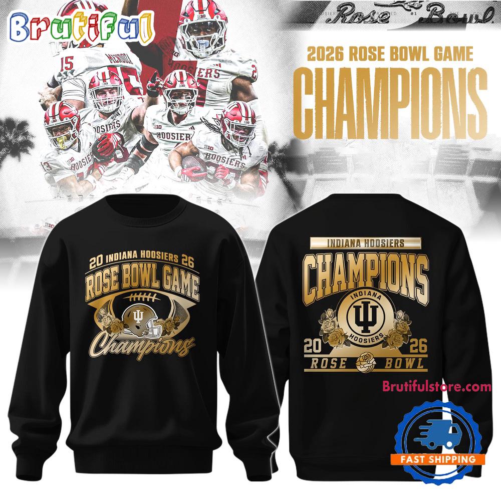 Product details: Indiana Hoosiers 2026 Rose Bowl Champions Game Limited Edition Gold Black Sweatshirt
