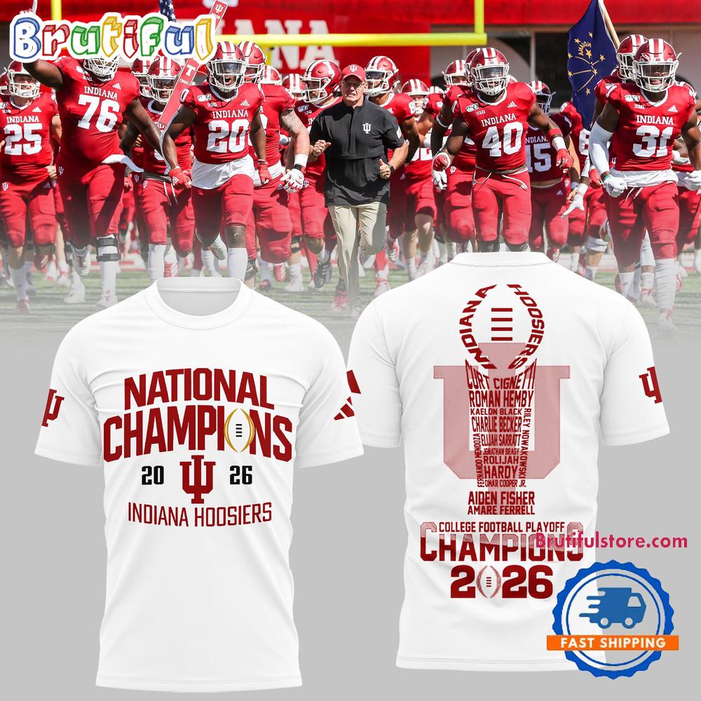 Indiana Hoosiers CFP National Champions 2026 Mascot Winner White T Shirt The 3D Hoodie is a fashion statement that goes beyond the ordinary. Using advanced printing technology, it brings designs to life with depth and vividness. Crafted from high-quality materials, it offers comfort and durability. The three-dimensional graphics create a captivating effect that’s perfect for casual wear or making a bold statement. Whether you’re expressing your fandom or showcasing your unique taste, the 3D Hoodie is a wearable work of art that sets you apart from the crowd. Embrace both style and individuality with this distinctive fashion piece.