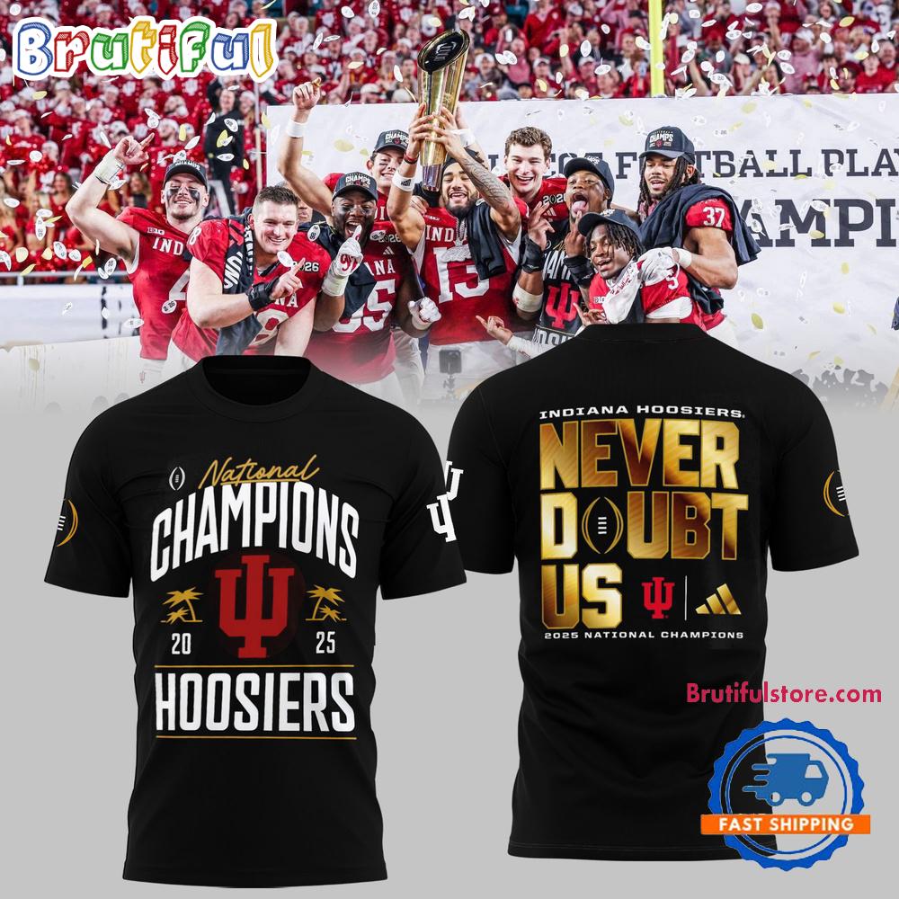 Indiana Hoosiers CFP National Champions 2026 Never Doubt US Black Gold T Shirt The 3D Hoodie is a fashion statement that goes beyond the ordinary. Using advanced printing technology, it brings designs to life with depth and vividness. Crafted from high-quality materials, it offers comfort and durability. The three-dimensional graphics create a captivating effect that’s perfect for casual wear or making a bold statement. Whether you’re expressing your fandom or showcasing your unique taste, the 3D Hoodie is a wearable work of art that sets you apart from the crowd. Embrace both style and individuality with this distinctive fashion piece.