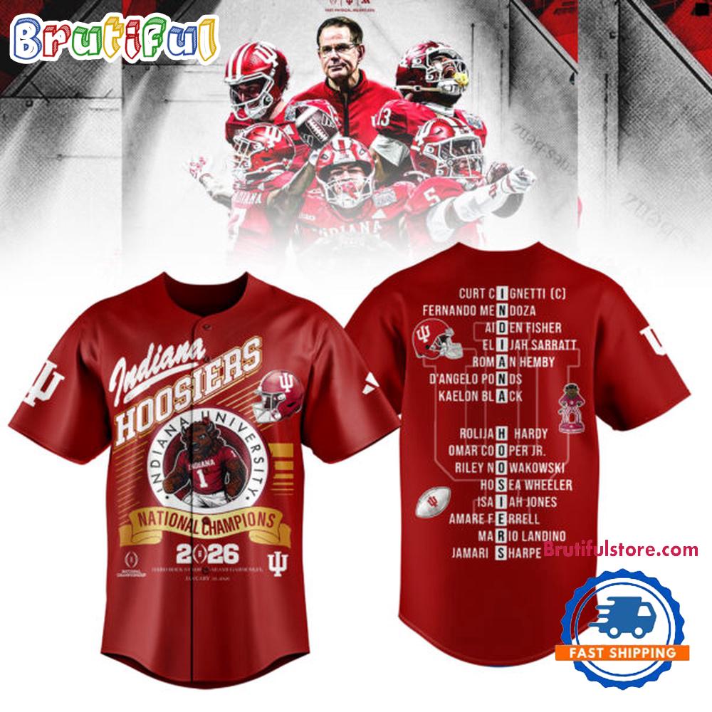 Product details: Indiana Hoosiers CFP National Champions 2026 Winner Team Player Name Red Baseball Jersey