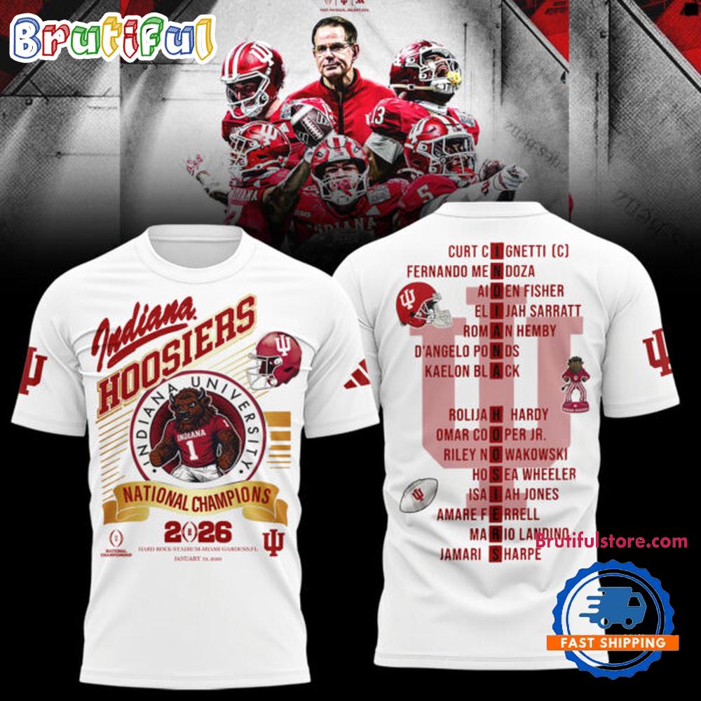 Photos Of Indiana Hoosiers CFP National Champions 2026 Winner Team Player Name White T Shirt