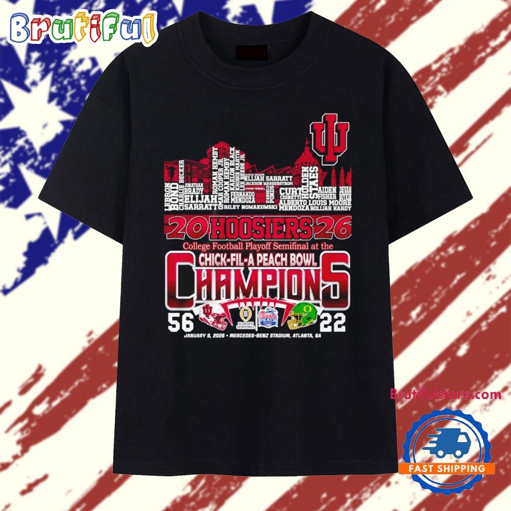 Photos Of Indiana Hoosiers Chick Fil A Peach Bowl Champions 2026 city skyline player name T Shirt