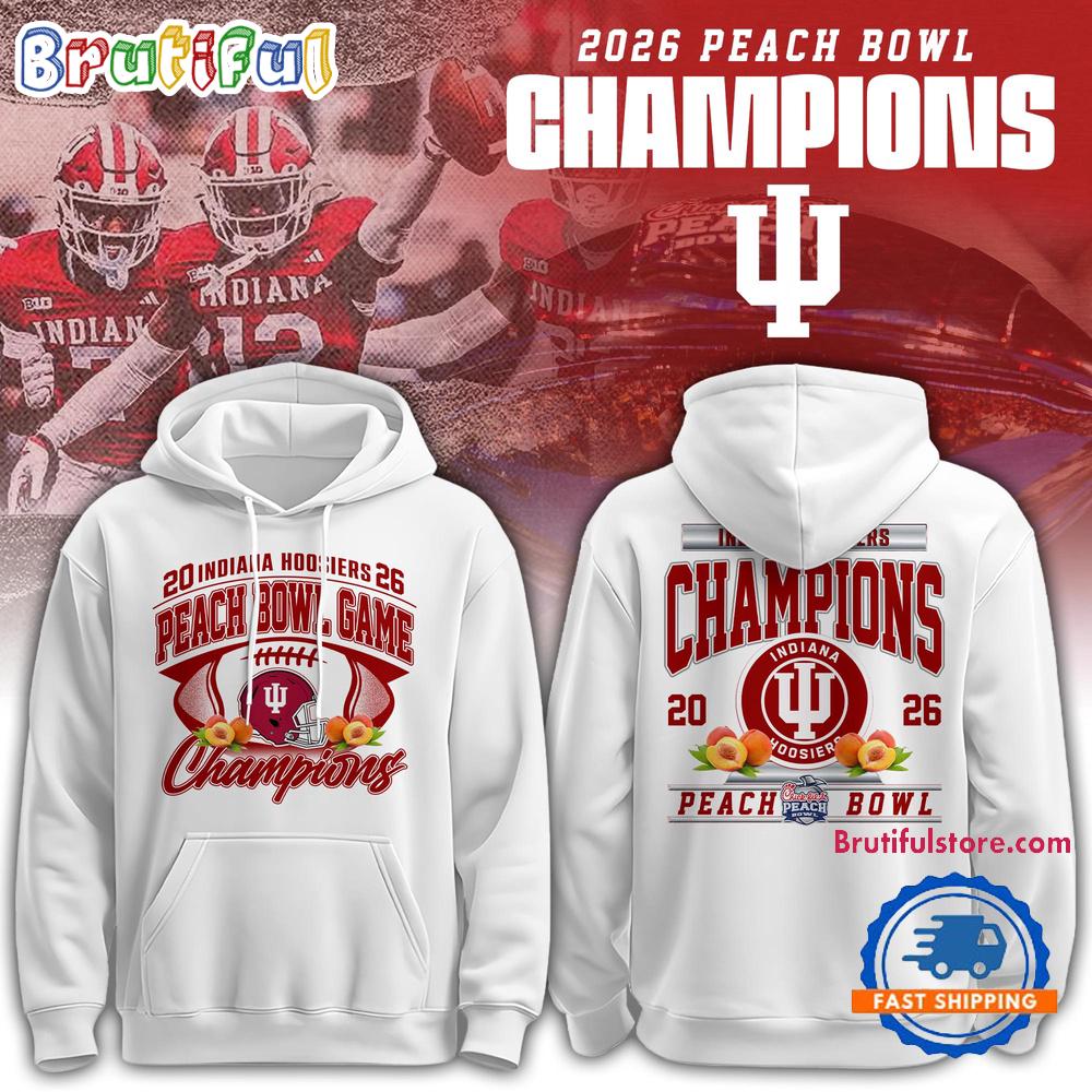 Photos Of Indiana Hoosiers NCAA 2026 Peach Bowl Champions Limited Edition White Hoodie