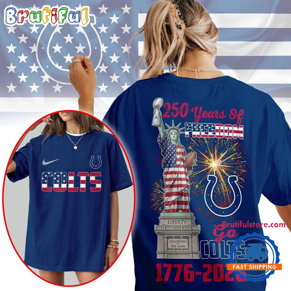 Product details: Indianapolis Colts 2026 NFL Statue Of Liberty 250th Anniversary Unisex 3D Shirt