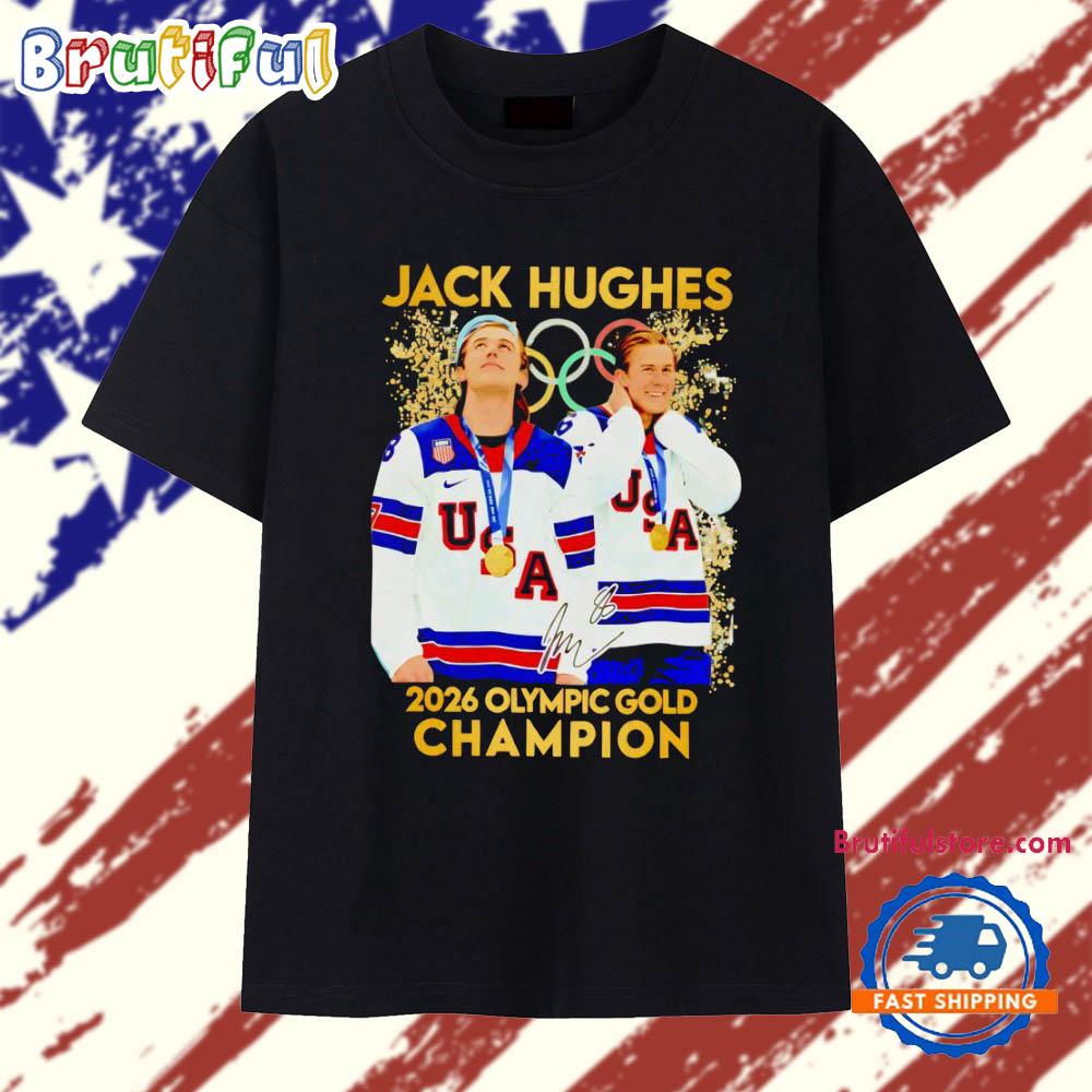 Photos Of Jack Hughes Hero USA Men’s Olympic Hockey Olympic 2026 Gold T Shirt