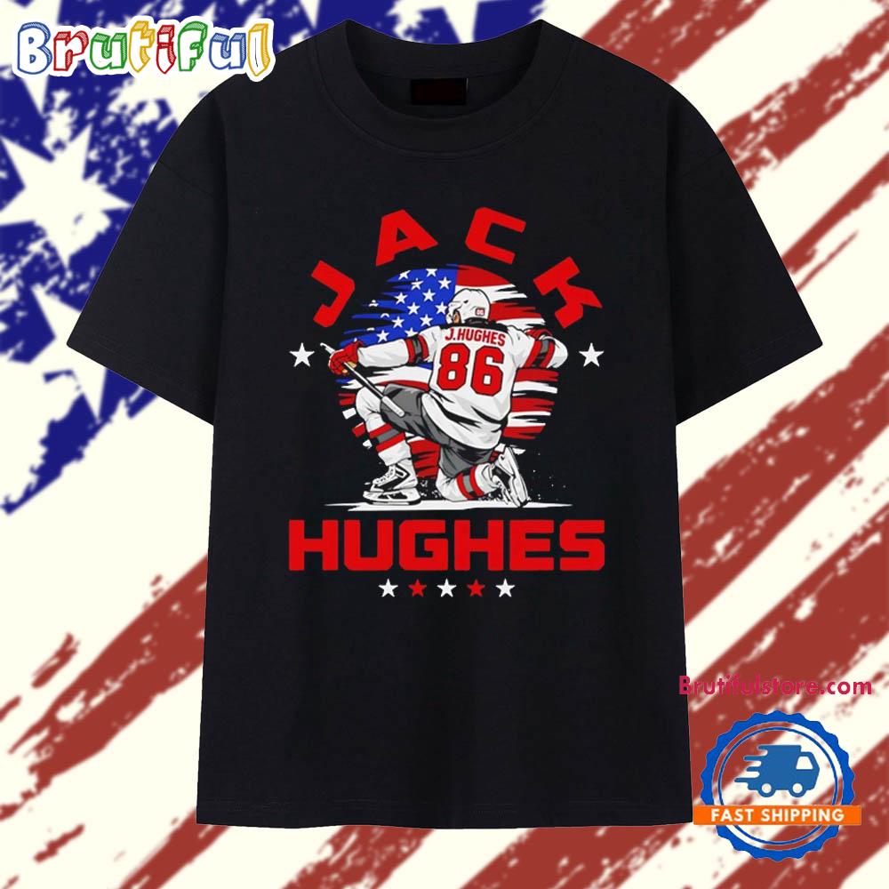 Product details: Jack Hughes New Jersey Devils USA Flag Celebration T Shirt