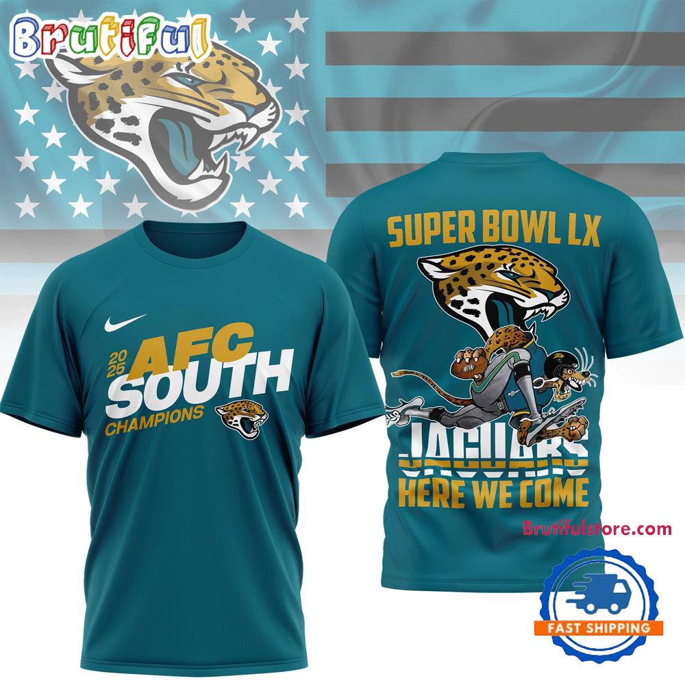 Product details: Jacksonville Jaguars NFL 2025 Division Champions 3D Shirt, Super Bowl LX Jaguars Here We Come Shirt
