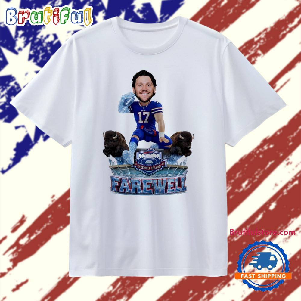 Product details: Josh Allen Buffalo Bills Hurdle Over Highmark Stadium Farewell Season caricature T Shirt