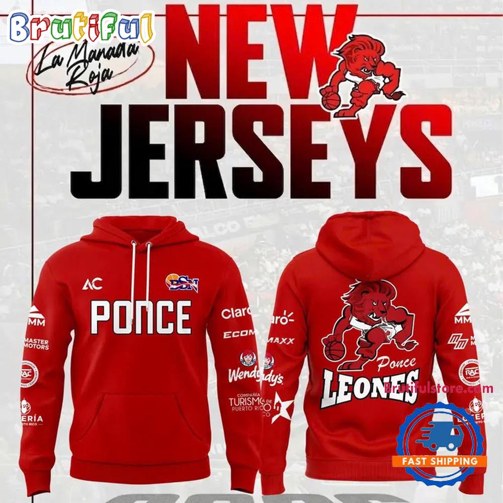 Photos Of Leones de Ponce BSN 2026 Red Hoodie Shirt