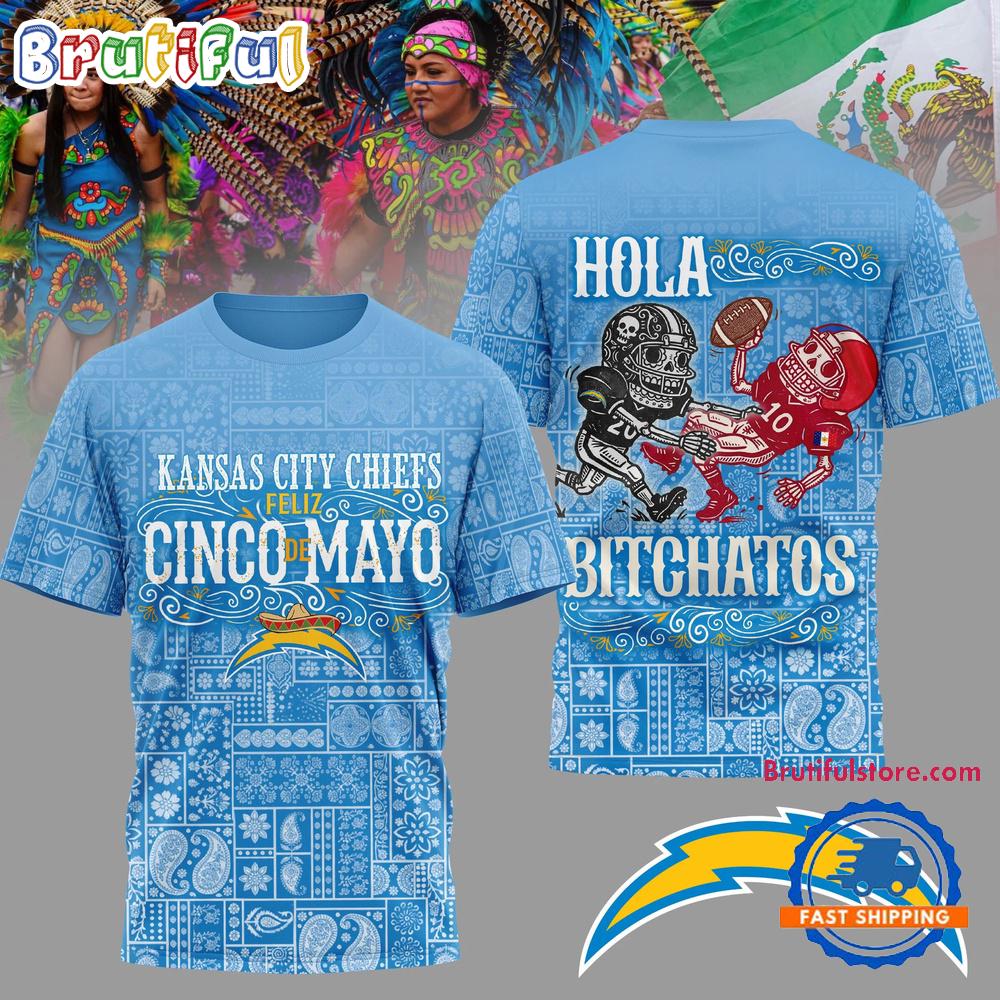 Product details: Los Angeles Chargers 2026 NFL Hola Bitchatos Cinco De Mayo Limited Edition 3D T Shirt
