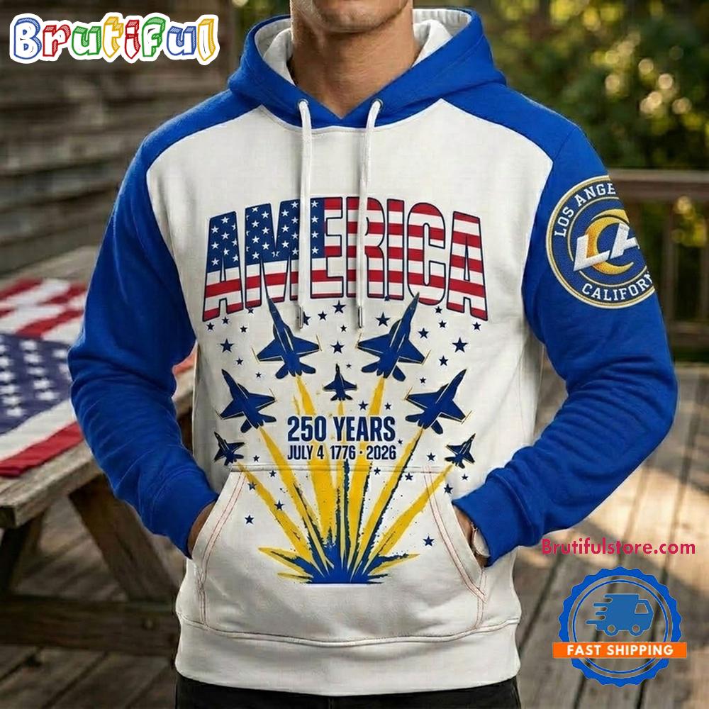 Los Angeles Rams 250th Anniversary of US All Over Printed Hoodie Shirt The 3D Hoodie is a fashion statement that goes beyond the ordinary. Using advanced printing technology, it brings designs to life with depth and vividness. Crafted from high-quality materials, it offers comfort and durability. The three-dimensional graphics create a captivating effect that’s perfect for casual wear or making a bold statement. Whether you’re expressing your fandom or showcasing your unique taste, the 3D Hoodie is a wearable work of art that sets you apart from the crowd. Embrace both style and individuality with this distinctive fashion piece.