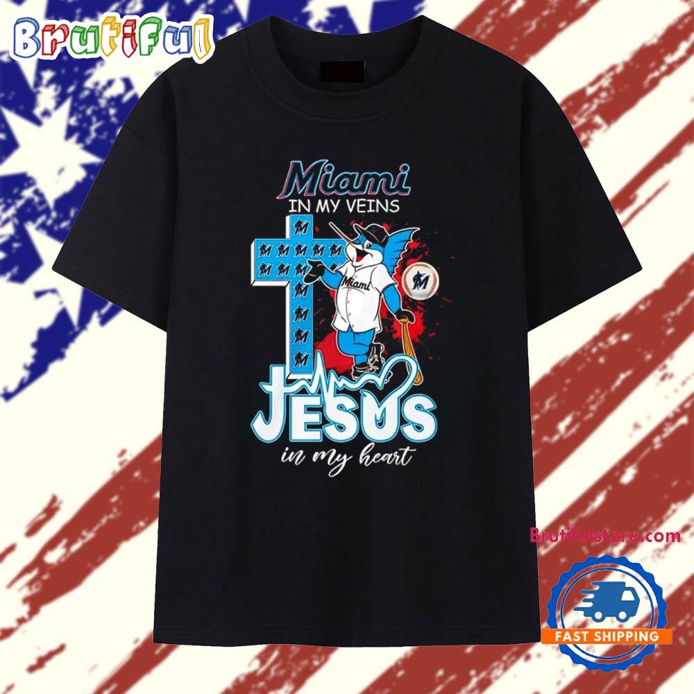 Product details: Marlins In My Veins Jesus In My Heart mascot T Shirt