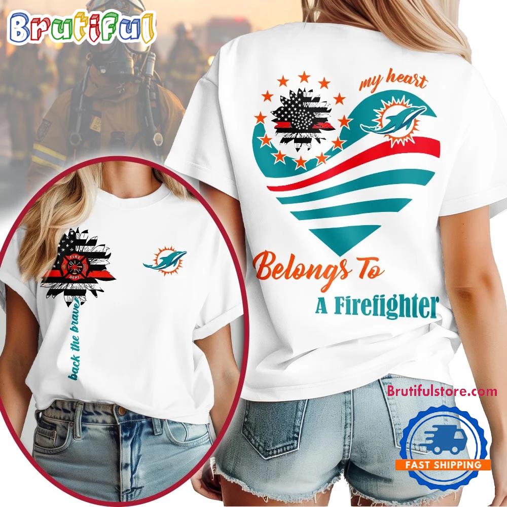 Product details: Miami Dolphins 2026 NFL My Heart Belongs To A Firefighter Unisex T Shirt