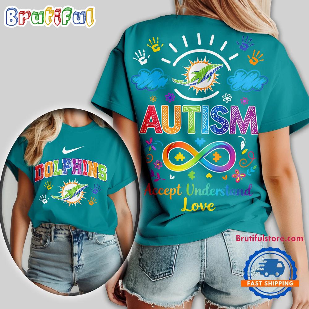 Miami Dolphins 2026 NFL National Autism Acceptance Month Design 3D T Shirt The 3D Hoodie is a fashion statement that goes beyond the ordinary. Using advanced printing technology, it brings designs to life with depth and vividness. Crafted from high-quality materials, it offers comfort and durability. The three-dimensional graphics create a captivating effect that’s perfect for casual wear or making a bold statement. Whether you’re expressing your fandom or showcasing your unique taste, the 3D Hoodie is a wearable work of art that sets you apart from the crowd. Embrace both style and individuality with this distinctive fashion piece.