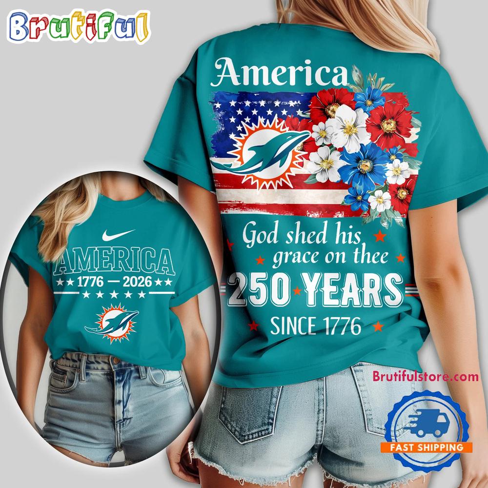 Product details: Miami Dolphins NFL America God Shed His Grace On Thee Unisex T Shirt