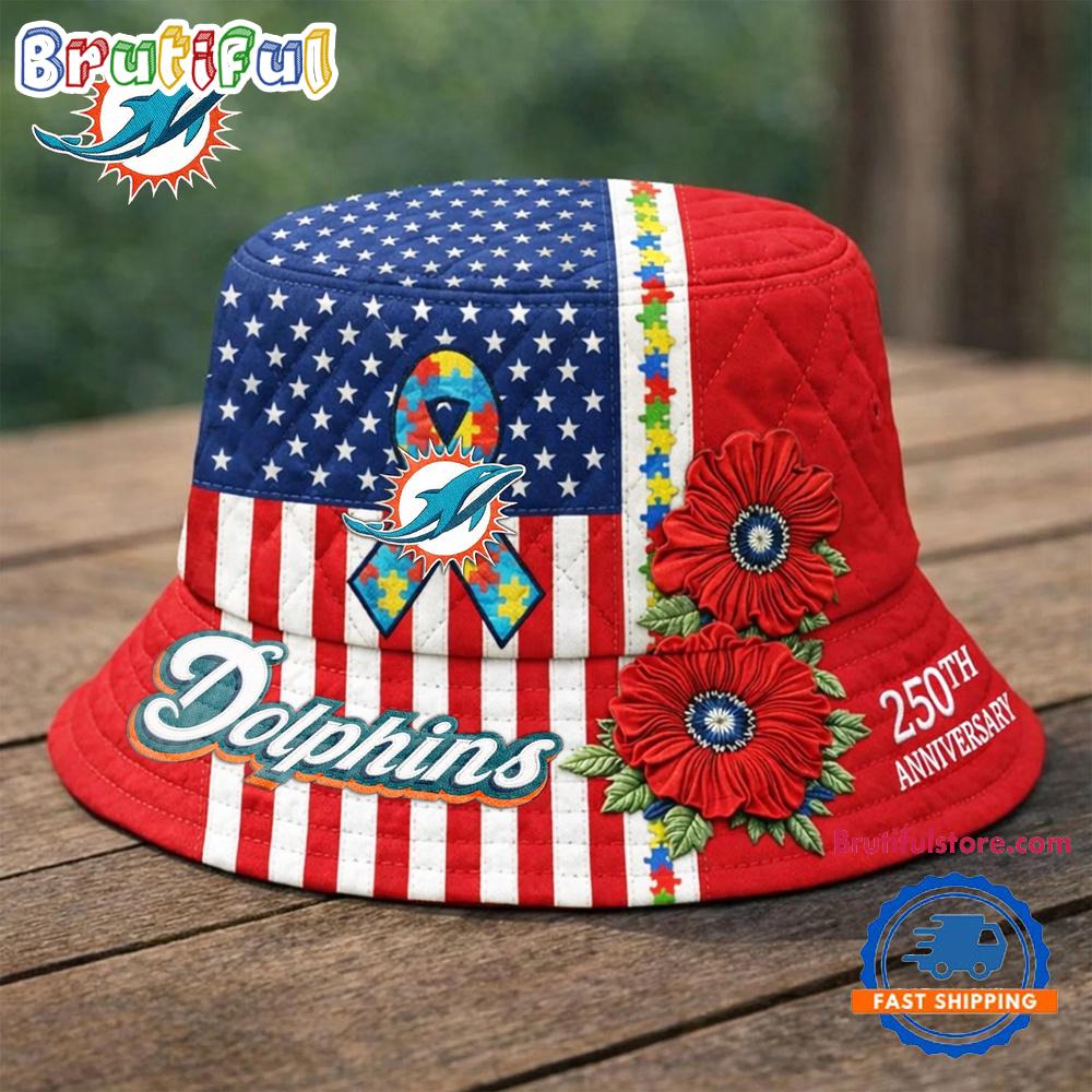 Photos Of Miami Dolphins NFL Autism America 250th Anniversary Bucket Hat
