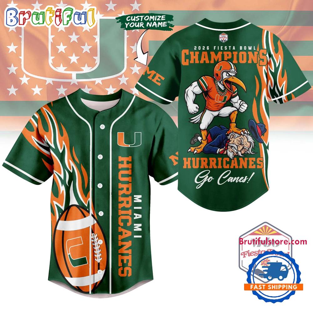 Product details: Miami Hurricanes 2026 NCAA Fiesta Bowl Champions Baseball Jersey