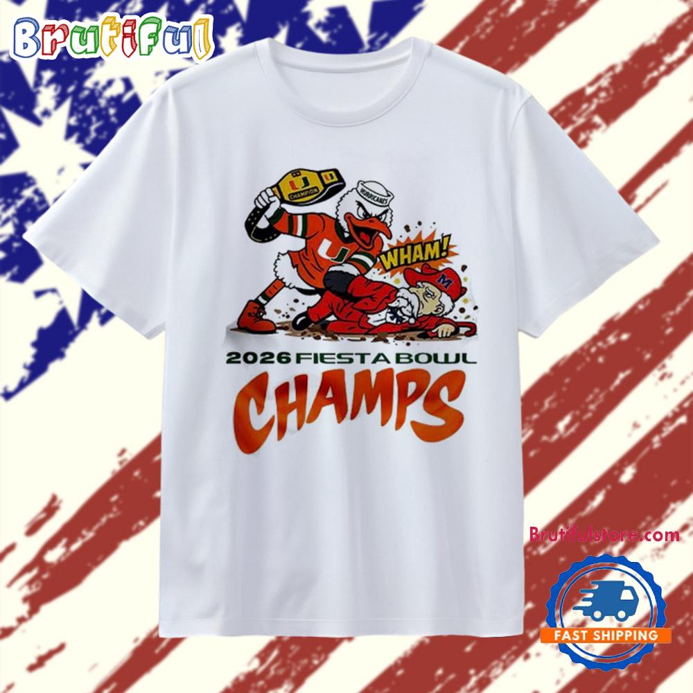 Product details: Miami Hurricanes Fiesta Bowl Champions 2026 It’s All About The U mascot T Shirt