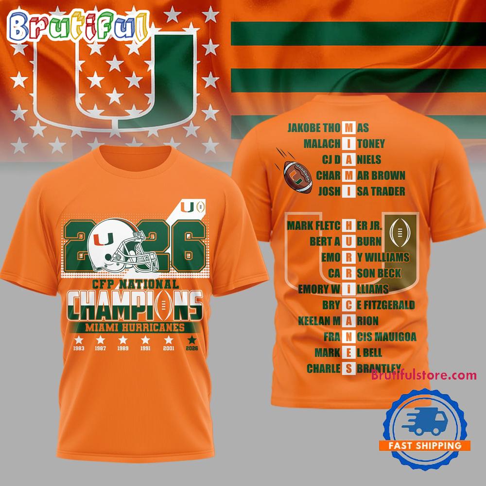 Miami Hurricanes NCAA 2026 CFP Champions Special New 3D Shirt The 3D Hoodie is a fashion statement that goes beyond the ordinary. Using advanced printing technology, it brings designs to life with depth and vividness. Crafted from high-quality materials, it offers comfort and durability. The three-dimensional graphics create a captivating effect that’s perfect for casual wear or making a bold statement. Whether you’re expressing your fandom or showcasing your unique taste, the 3D Hoodie is a wearable work of art that sets you apart from the crowd. Embrace both style and individuality with this distinctive fashion piece.